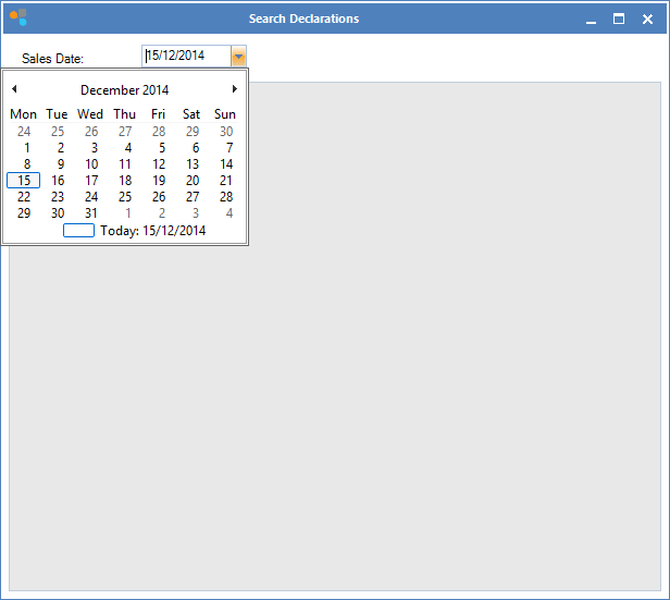 Step 2: In the drop down menu you should be able to select Search Declarations. Select the date you wish to search/reprint.