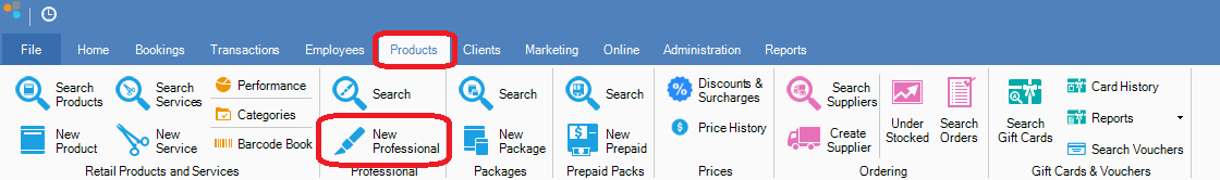 Step 1: Go to the Products tab and select New Professional.