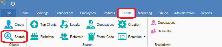 Step 1: Go to the Clients tab and select Search.