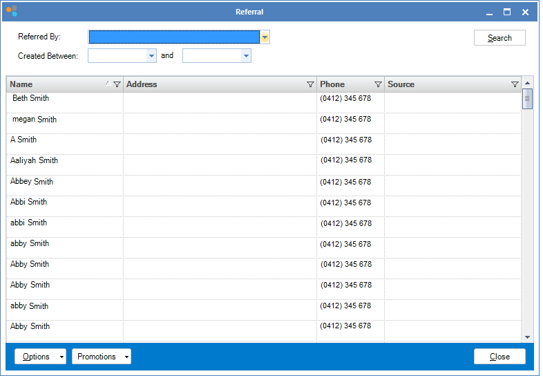 Step 2: The Referral window will open. In the Referred By field, select the client/source. This will show all clients that have been referred to by that client/source.