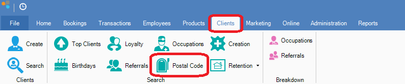 Step 1: Go to the Clients tab and select Postal Code.