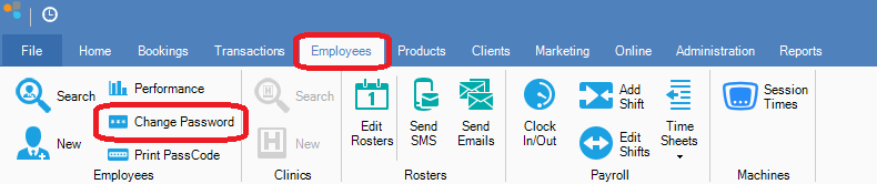 Step 1: Go to the Employees tab and select Change Password.