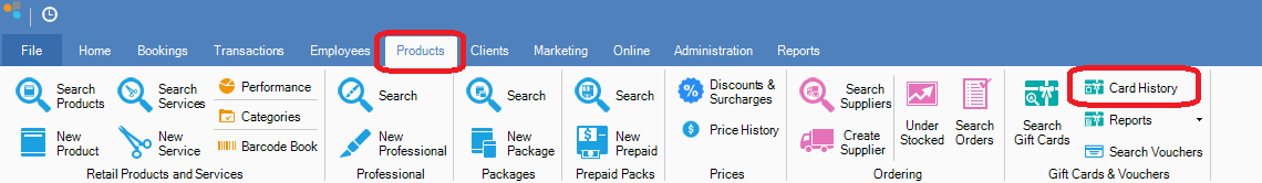 Step 1: Go to the Products tab and select Card History.