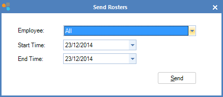 Employee: Select the employee you wish to send the rosters to. The default All will send rosters to everyone that has a rostered shift during the time frame.