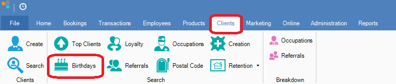 Step 2: The Client Birthday window will open. Choose a month in the Birthday Month drop down menu to show all clients that are celebrating their birthday during that month.