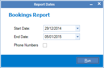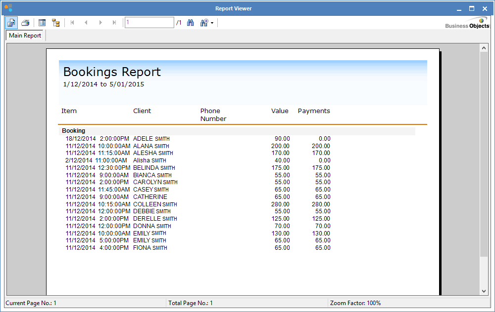 Step 3: The Report Viewer screen will show with a report of all bookings for the selected dates.