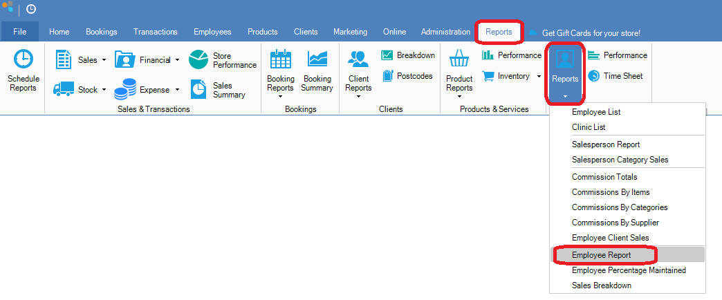 Step 1: Go to the Reports tab, select employee Reports and click Employee Reports.