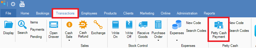 Step 1: Go to the Transactions tab and select Petty Cash Payment.