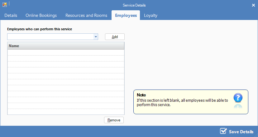 Step 5: If you want to restrict the employee that can perform this service, you may set the criteria here.