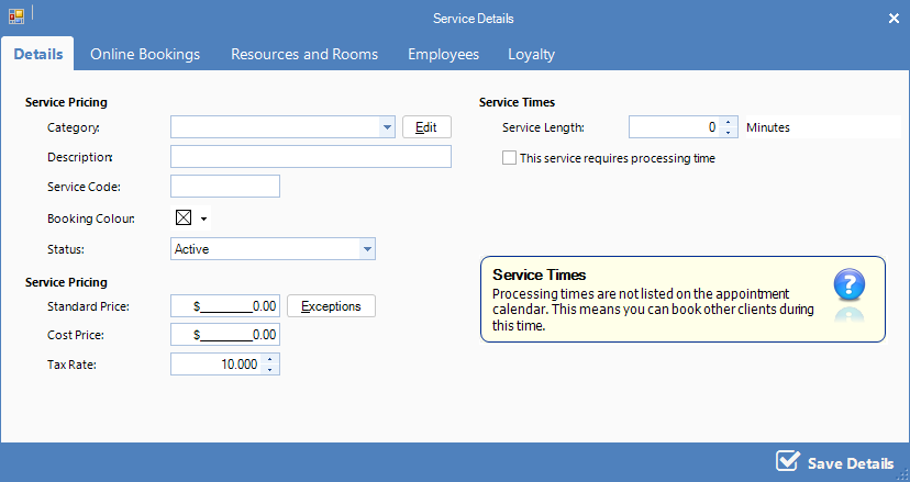 Step 6: If this service earns any points/dollars/tokens for the client, enter the relevant details then click Save Details.