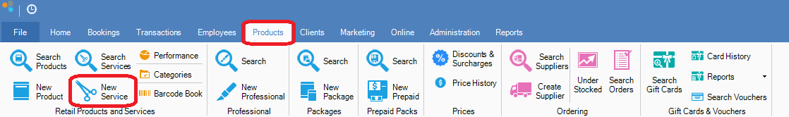 Step 1: Go to the Products tab and select New Service.