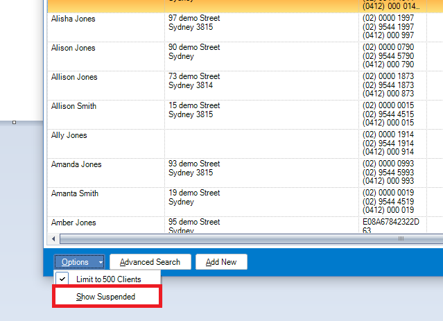 Step 2: Go to the Options tab and select Show Suspended to display suspended clients.