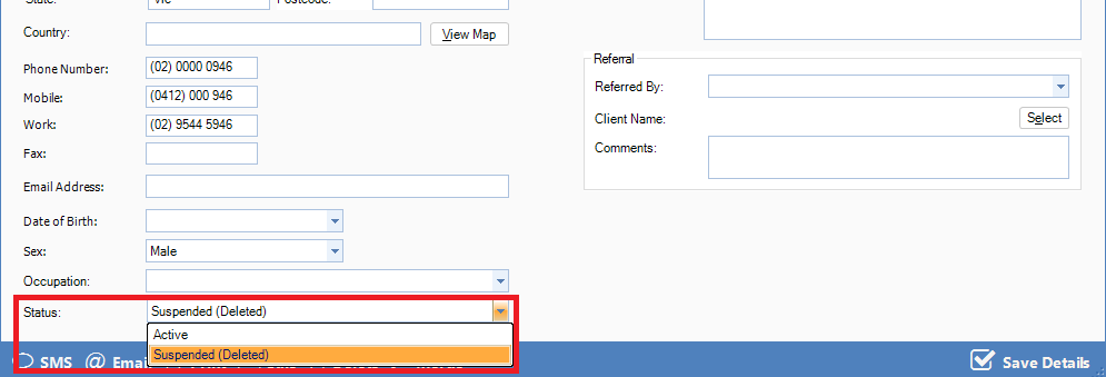 Step 3: Locate the suspended client by using the above search criteria and once found, open the client and adjust the status.