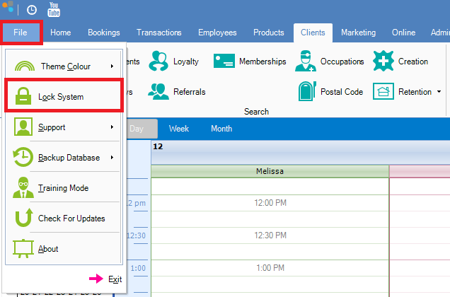 Step 1: Go to File and select Lock System.