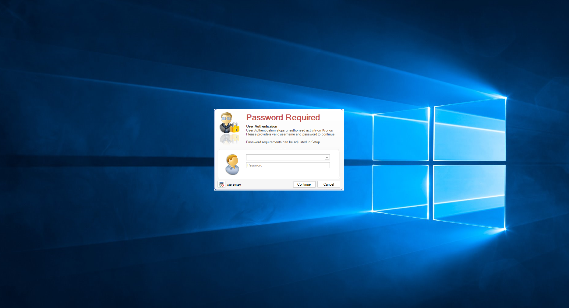 Step 3: To restore functionality, the software will continue to be minimised until the correct username and password is entered.