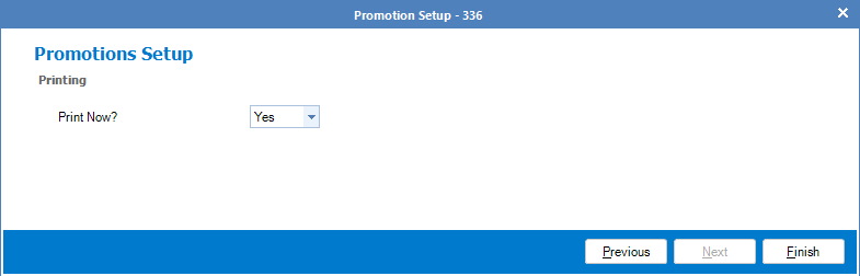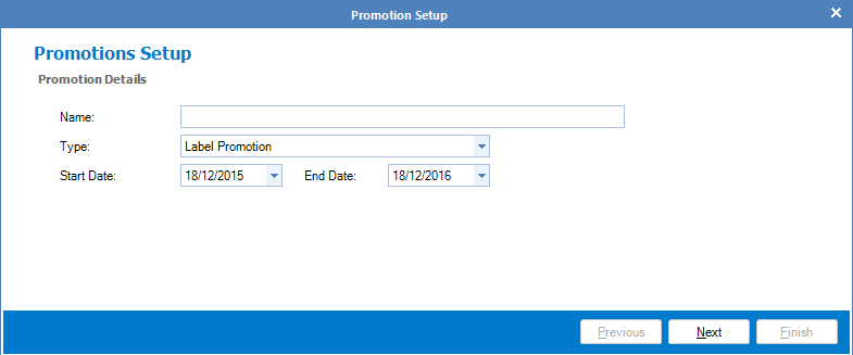 Step 2: The Labels Promotions Setup should appear. Enter the promotion's details and click Next.