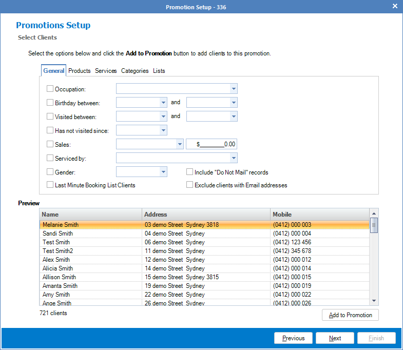 Step 3: You will now see the client's selection criteria. Proceed with selecting the right criteria and once done, click Add to Promotion and select Next.