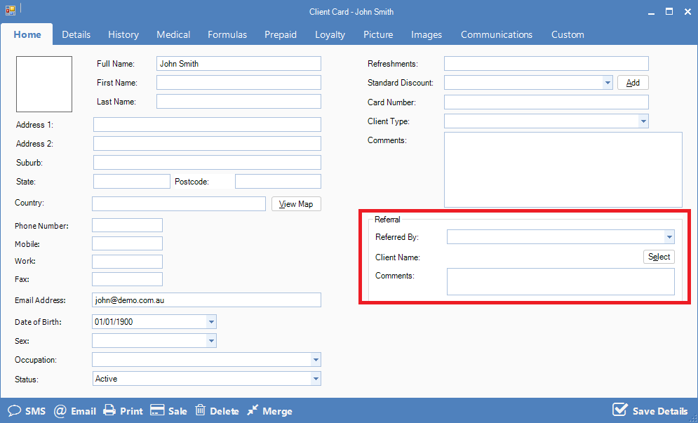 Konnect Spa and Salon Software allows you to enter referral information into your client cards so you can keep track of who has referred your client to your business.