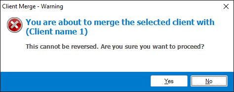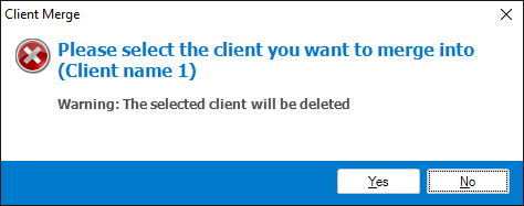 Step 3: A popup will appear prompting you to search for the client you wish to merge into this client. Select Yes.