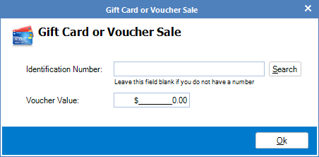 Step 3: Enter the gift card number that is matches exactly to your existing gift card records. It is very important that this number matches or you won't be able to find them when the client uses it. Next enter the remaining value that is on the existing gift card. Once entered, click Ok.