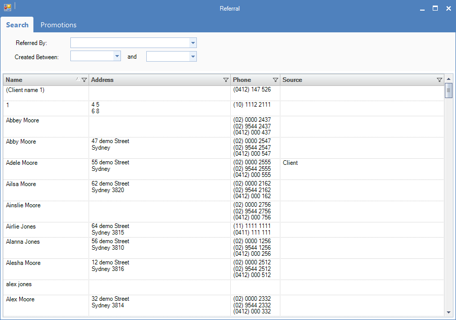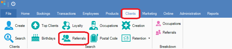 Step 2: The Referral window will display. You may change the list by selecting a specific referral to narrow down your list of clients. You can also further narrow your list by entering a created between date.