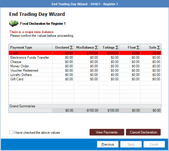 This is purely as a indication to you if there are any discrepancies when performing End Trading.