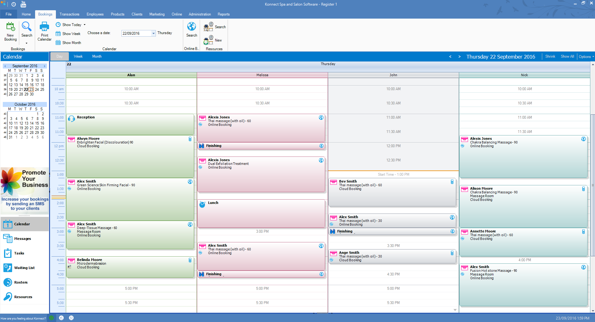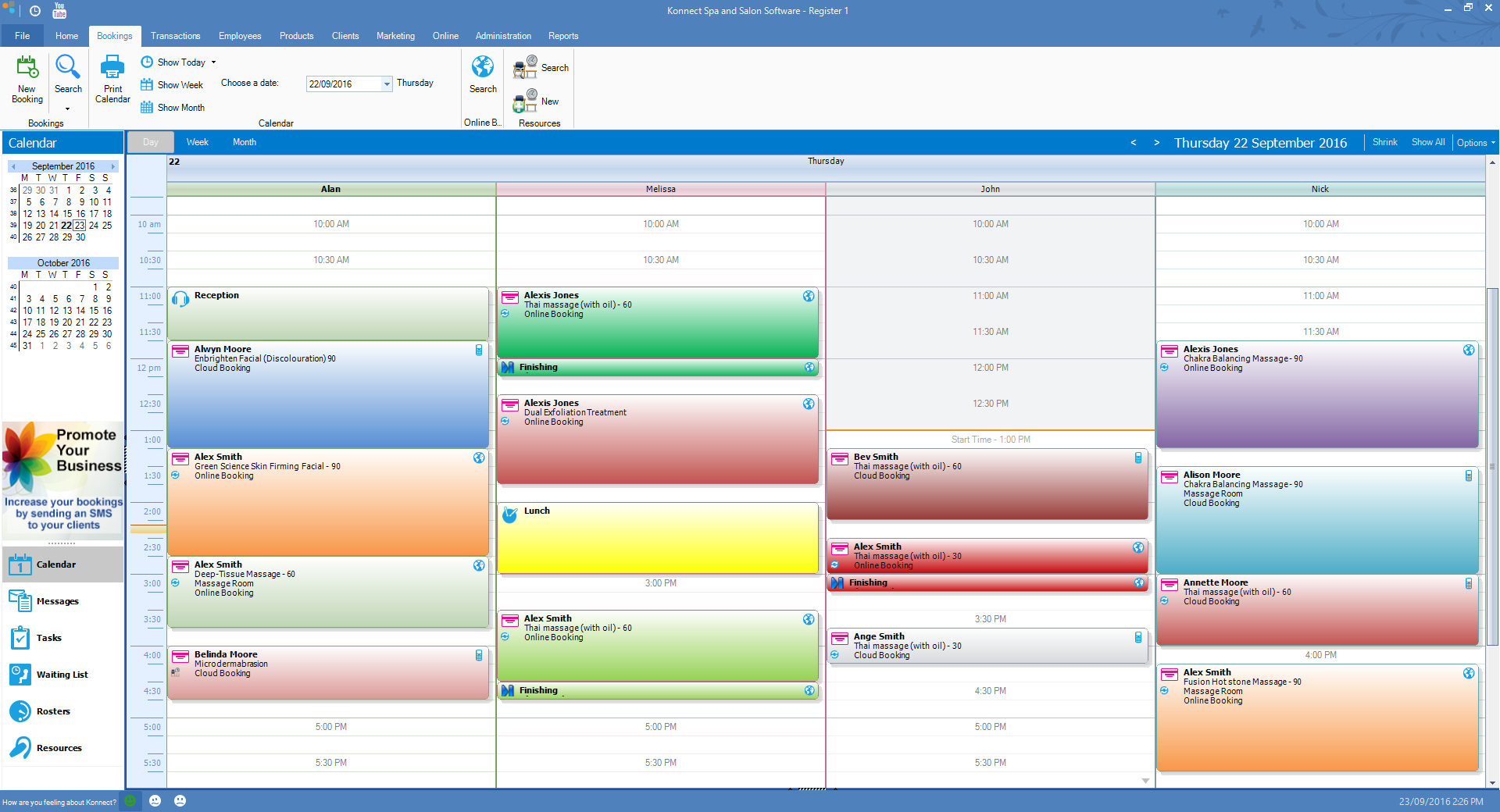 Konnect Spa and Salon Software gives you the option of colour coding your services to make it visually stand out on the booking calendar.