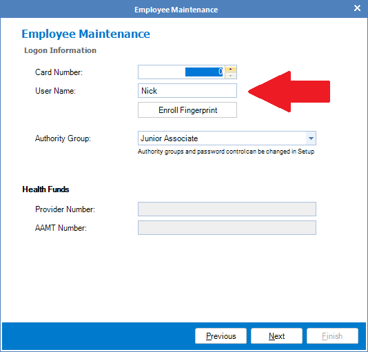 Eg: If you have 2 John Smith's working for you, when you create an employee card, you may use John for the first card, and John S for the second card so as the system can differentiate the two.
